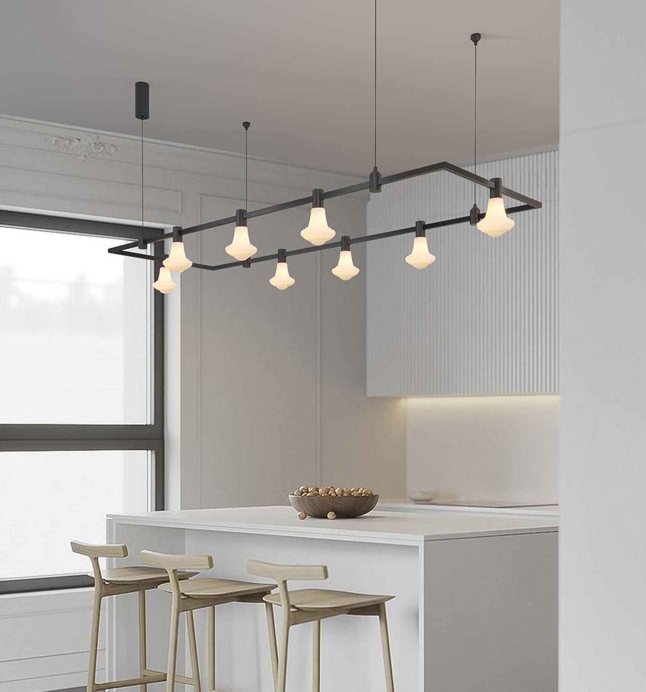 这是一款由黄铜制成轨道的智能低压照明系统,为空间照明应用而开发的智能高端产品。该系统采用灯体导电的设计原理,改变了每个灯头需要电线连接才能供电的传统方法。该系统不仅可以自由设计灯体款式,还可以自由搭配灯头款式及数量,根据空间照明应用需求,灯头可以在灯体轨道上自由滑行和自由转向来调整照明位置,以达到最佳的视觉效果,模组导电设计可以连接各种智能系统,实现智能控制灯光的效果,适用于所有需要灯具装饰和照明的建筑空间。